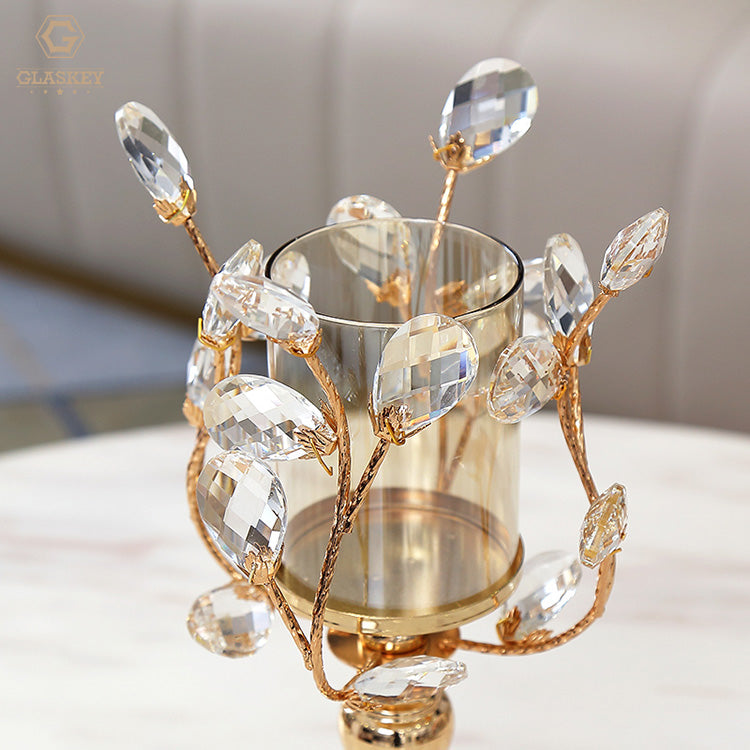 Creative Home Golden Aromatherapy Candle Crystal Candlestick Flower Glass Candlestick Romantic Wedding Props